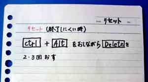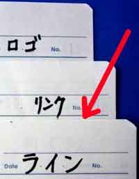 それからすぐにルーズ・リーフに「1項目で1ページ」として書き直した。勿論題目の順序も50音順に並べかえた。例えば新しく「リセット」について覚える。するとそのカードを作り(上の写真A)、「ライン」のカードと「リンク」のカードの間に差し込む(上の写真B)。これならいくら増えても、すぐに見出しで目的のページを開けることが出来る。