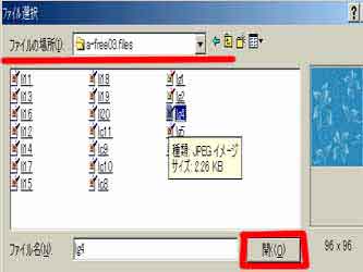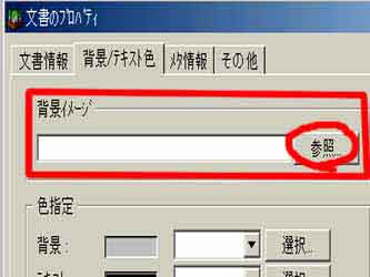 | A「背景イメージ」の「参照」をクリックする。 | B背景のフォルダまでいって好きな背景をクリックして「開く」をクリックする。 |