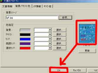 | C背景の色を確かめて「OK」をクリックする。 | Dはい、出来上がり!背景に模様が貼り付けられました。 |