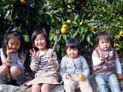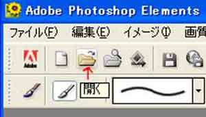 | 孫たちのミカンがりの写真を使います | @「Adobe Photoshop Elements」を立ち上げて、「開く」をクリックして使う写真をよんでくる。 |