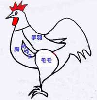 右の絵の「手羽」 「モモ」の所を クリックしてください |