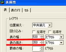 | I表の外を右クリックして「表の属性」をクリック | J「表の幅」を530、「表の高さ」を350と入れて「OK」をクリック | K右のマイコンピュータから使う写真を左の入れたいセルへドラッグして写真の高さが350になるようにする |