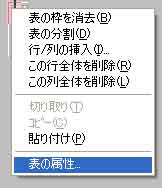| F文字を入れるので1行目左上のセルをクリックして右クリック | G「表の属性」をクリック | H「列数」を2と入れて「OK」をクリックし、セルの結合をする。 |