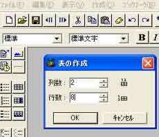 | @パソコン画面の右端にマイコンピュータ画面を立ち上げ、写真が入っているフォルダを開ける。左にビルダーで、はがきを作るページを開く。 | A右のマイコンピューターの「表示」を「縮小版に」しておく。 | Bホームページビルダーの「表の作成」をクリック |