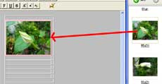 L右のマイコンピュータから使う写真を左の入れたいセルへドラッグする。写真の大きさを170×128として6枚とも入れる。