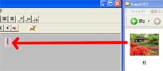 | @パソコン画面の右端にマイコンピューターを立ち上げ、写真が入っているフォルダを開ける。左にビルダーでハガキを作るページを開く | Aホームページビルダーの「表の作成」をクリック | B列を1、行数を1と打ち込み、「OK」をクリック |