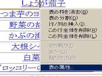 今までは「私って計画性がないんだ。初めから左寄せにしておけばいいのに・・・」と、ぼやきながら1つ1つ左へ揃えていました。ところが、こんな簡単な方法があったなんて!・・・と感心しました。これは数が多くなればなる程便利な機能です。何十・何百とあっても1回で表の左や右にいきます。それで先月から野菜の目次は左揃えになって見やすくなりました。 |