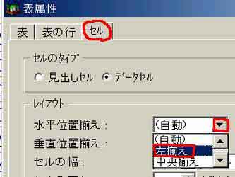 A上が「セル」という状態でレイアウトの「水平位置揃え」の▼をクリックして「左揃え」をクリック |