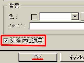 | B「列全体に適用」の左にチェックを入れ、「OK」をクリック |