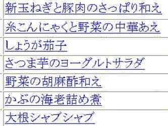 先月ホームページのレシピをアップしようとして野菜の目次を見ると非常に見にくい。中央揃えになっていたのです。計画性のない私は何も考えないで中央揃えのまま行を増やしていました。2〜3行の時はそれでよかったのですが数が多くなると、やはり探しにくいのです。そこで1つ1つ左に揃えていました。すると師匠がそれを見て「そんな面倒な事をしなくても、まとめてすればいいのに。」と。「えっ、そんな事が出来るの?」と教えてもらいました。