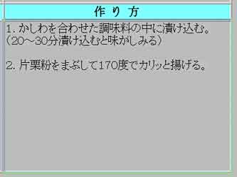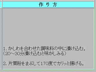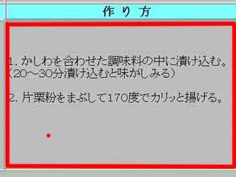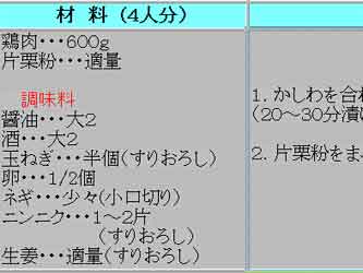 | 夏の盛りも「暑い暑い」と言いながら主婦は毎日台所に立ちます。私もタオルを首にかけてボチボチやっています。私流の夏料理のポイントは、火を使うのを短時間に(オーブンや圧力鍋が活躍)。あとは簡単に作れるもの! それにしても周りの主婦の人達は本当に料理をよく知っているのに感心します。私は作り方を聞き、教えてもらった料理はとにかく作ってみます。そして写真を写して、忘れないうちにパソコンで整理をしておきます。 そのレシピ作りの時、左の「材料」と右の「作り方」がアンバランスになってしまいます。同じぐらいの行数になるといいのですが、なかなかうまくいきません。行数の少ない方がセルの中央になってしまいます。どうも格好がわるいのです。一番上から書きたいのです。打ち込む画面では出来ているのに、ブラウザー画面で見るとセルの中ほどの所にいってしまう事があるのです。なんとかならないものかと、また師匠に尋ねました。そして教えてもらったのが下のやり方です。