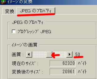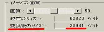 | ホームページを立ち上げる時は1ページ6万バイト以下にするというのは、苦戦記の31で書きました。その続きで、そのためには写真を軽くする事が不可欠です。 以前わが家が、光ファイバーではなく電話回線だった頃です。私は時々インターネットで料理の先生達のホームページを見ていました。おしゃれな料理を作るので有名な某先生のホームページを見つけました。ところがページがなかなか出てこないのです。5秒・10秒・20秒・1分・2分と経ってもダメ。もうそれ以上待てなくて他所へ行きました。多分おしゃれな某先生は自分の家が光ファイバーで少々ページが重くても直に画面が出てくるのでしょう。それともそういう知識が無かったのか?まだ今は電話回線の家庭が半分以上あるというのに・・・。 反対に世界的に有名になった、栗原はるみさんのホームページは軽くて作りがシンプルで直にすっすっと出てきました。嬉しくて時々レシピをダウンロードして利用させてもらっています。 そういう経験があるので師匠のいう1ページ6万バイト以下にするというのは身にしみて分かります。そのためにはページに載せる写真を軽くすることが必要です。その方法です。