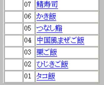 | アー、大変だった!!自業自得ですから誰にも文句は言えません。 じつはホームページのレシピの目次に番号を付けていなかったのです。うっかりミスと、いい加減な性格とが入り混じった結果です。 師匠からは、目次を作る時は必ず番号を(100までの時は)01・02と付けるようにと、口を酸っぱく言われていました。始めの頃は数が少ないので番号を付けるのを忘れていても別に不便は感じませんでした。それがファイルが百を超えた頃からリンクがやり難くなってきました。直さないとダメだと思いつつズルズルと今になっていました。 ファイルが50〜60をこえたらフォルダーを分けた方がいいとも言われていました。それで1年程前に素材別にレシピのフォルダーを作り、整理したのです。その時も大改造で大変でした。野菜・肉と分けていき、すっきり整理ができました。それが@図です。中身は何だとわかるのですが、目次の番号が抜けていたのです。始めから計画してやるべきだったのですが・・・。その時になんと、目次の番号を忘れていたのです。大変恥ずかしいのですが、「こういう事にならないように」と敢えて書いておきます。@の目次だと、リンクの時に「next」・「back」で迷うのです。 それで今回直したのがA図です。01から番号を打っていきました。これで随分仕事が楽になりました。師匠の言う「基礎基本をしっかりしておかないとダメ」と言うには理由があったのです。それと、傷は早いうちなら修復は簡単です。泥沼に入り込んでしまうと直すのは大変なことです。実はまだ大変な手直し(ファイル名直し)があったのですが・・・次回に。