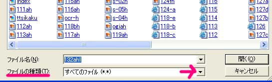 | @大きくしたい写真をクリックしてから「リンク」をクリック | A「参照」をクリックしてから、「ファイルの種類」の三角をクリックして、「すべてのファイル」にして、リンクしたい写真の番号をクリックし、「開く」をクリックする。 「OK」をクリックすると写真に枠 |