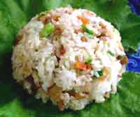 3.Aをあつあつご飯にまぜて、小さく切ったねぎを散らす。