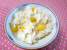 | ☆ 銀杏を炊いてみました。そのままでも美味しいのですが、ご飯にするとまた格別の味です。 ☆ もち米と半々の分量にすると数段 美味しくなります。 |