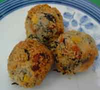 @.ひじきは水で洗う。 A.里芋は電子レンジで3分加熱して、熱いうちにつぶす。 B.ひじき、里芋、コーンを混ぜ合わせて一口大に丸めておく。 C.Bを水にくぐらせてパン粉をつけて形を整える。 D.フライパンにサラダ油を1cm程入れて、170度の温度で転がしながら色よく揚げる。