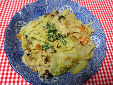 | 白菜・椎茸・人参・春菊等・・・適宜 だし汁・・・1カップ 粉豆腐・・・40g 調味料 砂糖・・・大2 しょうゆ・・・大さじ1 |