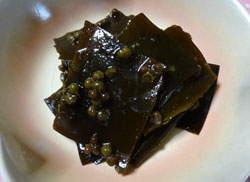 | 山椒をいただいたので、昆布の佃煮を作ってみました。 時間はかかりましたが、美味しい佃煮が出来ました。 |