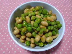 | 茹大豆・・・1カップ 茹グリンピース・・・1カップ 砂糖・・・大3 しょうゆ・・・小1 水・・・50cc |