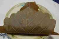 3.あんを包み、柏の葉に包んで12分蒸す。