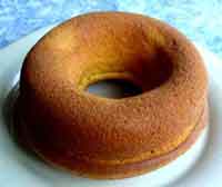 H、焼けたらオーブンから取り出し、さまして型からはずす。仕上げに粉砂糖をふりかける。