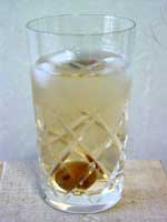 梅ジュース ☆疲れた時等、冷たい水で10倍に薄めて飲みます。中の梅はお茶請けにしてもいいし、梅ゼリーにしてもいいし、このようにジュースと一緒に入れてもいいです。 |