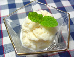 | 自然な甘さが美味しいです。陸公民館の料理の先生に「騙されたと思って作ってみて!」 と、教えてもらいました。即、作ってみると甘酒と豆乳の優しい甘さが口の中に広がりました。こういう物はあまり食べる事が無かったのですが、この暑さとこの味にはまり、今年はよく食べます。 孫が来たので出してやると、「ちょっと・・・パス」と言って一口食べて返されました。子どもにとっては自然な甘さがもの足りなかったのでしょうか?ガックリです。 |