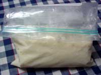 @甘酒と豆乳をフリーザーバッグに入れて冷凍室に保存する。 A1〜2時間したらフリーザーバッグの上からグチャグチャ揉み、冷凍室に。 Bそれを3〜4回すると左のように固まってくる。 C器に盛って出来上がり。 |