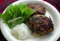 C.器に盛って、大根おろしと水菜(4〜5cmに切る)を添え、ポン酢醤油をかけて食べる。