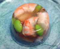 C.プリン型に枝豆5粒と海老を入れてBを流し入れ、8個分作り、冷蔵庫に入れ冷やし固める。