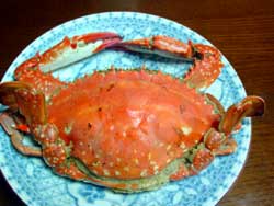 生きたワタリガニの大きいのが魚屋さんにいました。ワタリガニは鍋もいいですが茹でてそのまま食べるのが最高!