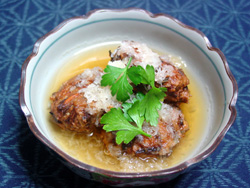 | 相生には鰯浜という地名があるぐらいですから昔から鰯がよく獲れたのでしょう。私も好きでよく食べます。 これは、目先を変えて団子にしています。生姜汁が利いていて、寒い冬に嬉しい一品です。 |