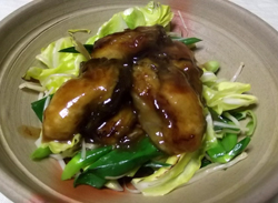 1.かきは振り洗いしてから、キッチンペーパーで水けをとる。 2.かきに片栗粉をまぶし、フライパンにサラダ油を入れて 両面をこんがり焼く。 3.●の調味料を入れて絡ませる。 4.野菜を炒めた上に盛り付ける。 |