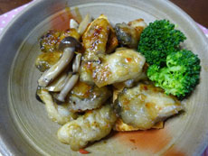 1.豆腐は食べやすい大きさに切り、水気を切る。 2.牡蠣は塩水で振り洗いして、水気を切る。 3.えのきは小房を分けておく。 4.フライパンに油を大さじ1を入れて@の豆腐を両面焼き色がつくまで焼き、別皿に取り出す。 5.調味料を合わせておく。 6.Aに牡蠣に片栗粉をまぶす。 7.Cのフライパンに油を大さじ1を入れてEの牡蠣を両面焼く。焼けたら、フライパンの端に えのきを入れてDの調味料を入れて混ぜ合わせる。 |