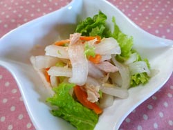 4.5分程おいたら水気を絞る。ツナは油をきり、全部混ぜ合わせる。