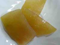下ごしらえ西瓜の実の下の白い部分を食べやすい大きさに切る作り方1.水(400g)の中へ味醂と昆布茶各スプン2杯を混ぜる2.上記の中へ西瓜の実と皮を除いた白い部分(皮)を 一口大にきって柔らかくなるまで炊く、だいたい強火 5分と弱火で8〜10分煮る 3.西瓜か柔らかくなれば片栗粉スプン1杯でとろみをつ けて出来上がり 4.少し冷やして召し上がるのも口当たりが良い 効果心臓機能・筋肉機能の調整・利尿作用等 | |