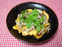 | 卵・・・2個 まいたけ・・・1/3パック しめじ・・・適宜 三つ葉・・・適宜 調味料 しょうゆ・・・小さじ1 味醂・・・小さじ1 だし汁・・・半カップ |