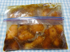 1.肉は一口大に切る。 2.ジッパーに肉と調味料を入れて揉み込み、出来るだけ平らにして袋の空気を抜いて冷凍する。 3.食べるだけ ペキンと折って、フライパンに並べ、弱火で8分蒸し焼きにする。(途中で一度裏返す。野菜も一緒に入れたい時は水を大さじ1〜2を入れる) |