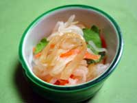 くらげのコリコリした食感とごま油が大根をより美味しくします。