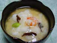 | かぶ・・・200g きくらげ・・・2こ (水につけてもどす) ぎんなん・・・4こ 海老・・・6ぴき 焼きあなご・・・適宜 卵白・・・1こ 生姜・・・1かけ だし・・・半カップ |