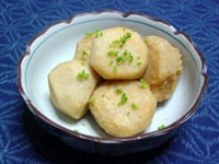 1.里芋は洗って皮をむき、食べやすい大きさに切る。面取りをしてぬめりが無くなるまで水洗いする。(ぬめりがあると焦げ付きやすいです) 2.鍋に里芋とだし汁を入れて強火で煮る。泡が出てくるのでこまめにすくい取る。 3.泡を取ったら、火を弱め、砂糖を入れて3分程煮てからしょうゆ大さじ1.5を加え、落し蓋をして煮る。 4.竹串が通るようになったら残りのしょうゆを加え照りをだす。蓋を外したまま里芋を転がして、煮汁がほぼ無くなったら火を止めて柚子の皮をふる。 |
