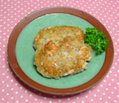 1.れんこんはきれいに洗ったら皮のまますりおろす。えびは皮をむいて背わたを取り、大きければ2cmぐらいに切る。 2.れんこんは水分を切らないで、そのままボールに入れて、そこにえびと片栗粉と塩を入れて混ぜ合わせる。 3.フライパンにごま油をひいてAのたねを4つに分け、小判型にして蓋をして焼く。両面がきつね色になったら出来上がり。 |