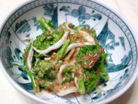 1.ブロッコリーは小房に切って、茹でる。 2.調味料を混ぜる。その中にブロッコリーと旬のしんこを入れて和える。 |