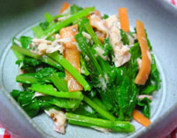| 小松菜・・・1つかみ 人参・・・4cm ツナ缶・・・小1缶 調味料 粒マスタード・・・大1 しょうゆ・・・大1 |