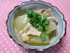 | 冬瓜・・・400g 豚肉・・・100g 生姜・・・10g ねぎ・・・少々 調味料 酒・しょうゆ・・・各大1 砂糖・・・小1 和風だし・・・小1 |