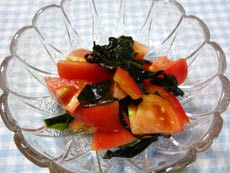 3.わかめがもどったら、甘酢とトマトを混ぜる。