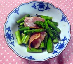 1.アスパラは4cm程にきる。ベーコンも同じ大きさに切る。