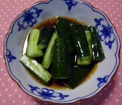 1.きゅうりは縦2つに切り、上から叩きつぶし そして、更にらんぎりにする。